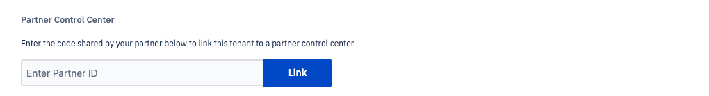 Enter a partner ID to link a Partner Control Center with a tenant. Learn more about the Partner Control Center.