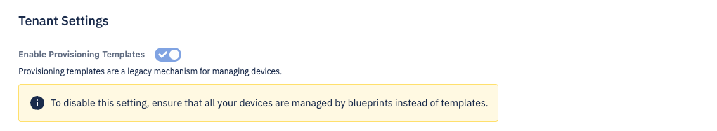 In order to disable this setting, all Templates-based devices must be upgraded to Blueprints or removed from the tenant.
