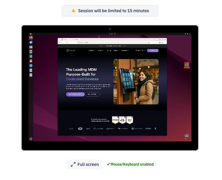 During a session, you’ll have control of the device. Move and click on your cursor in the Remote Viewer screen to interact with the device.