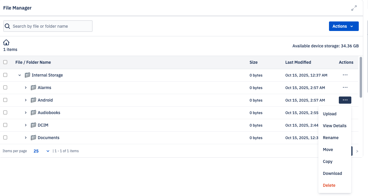 File Manager for Devices: You can now manage files on your device. We’ve added a new section to individual devices. During a file manager session, you can: