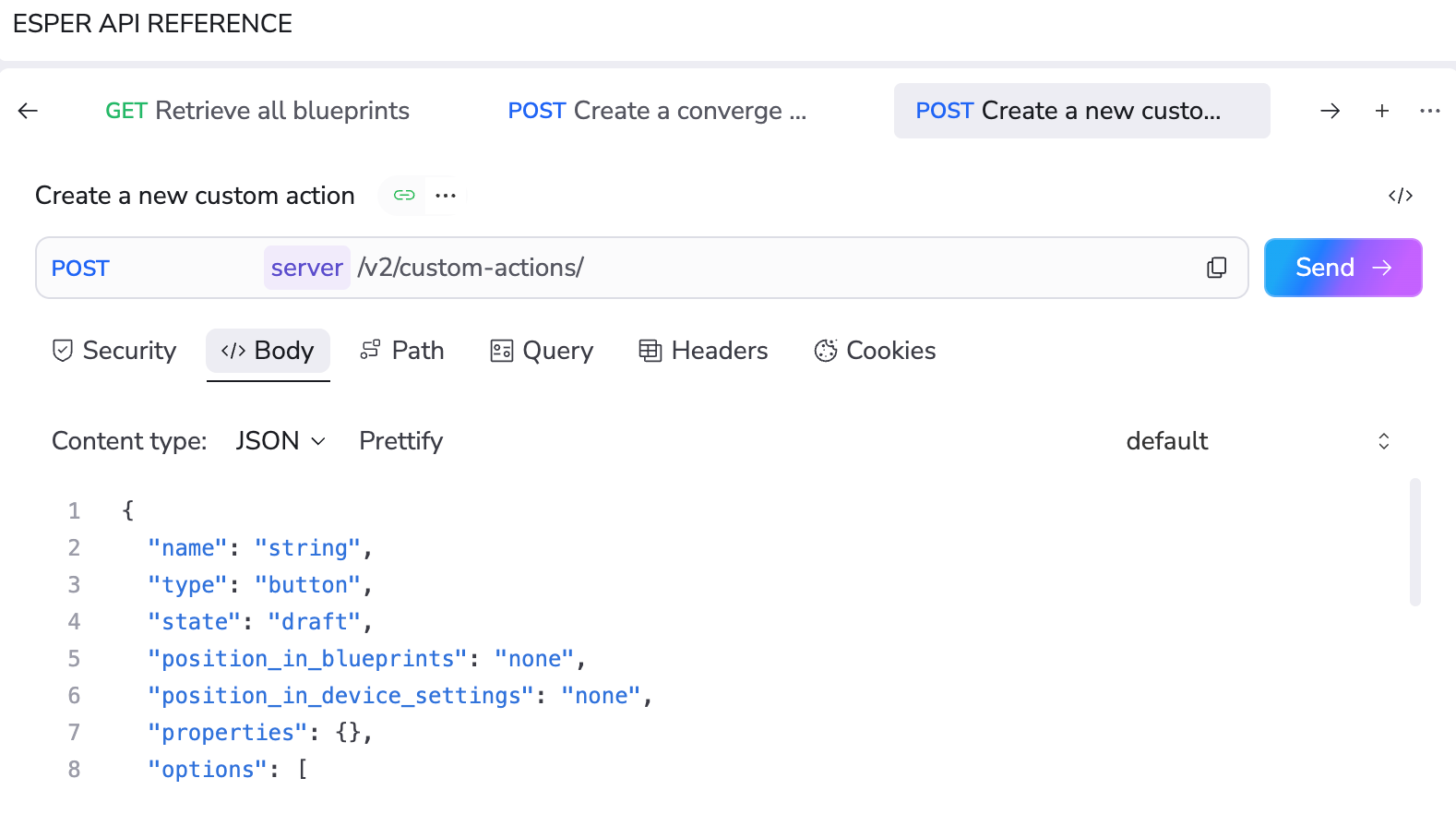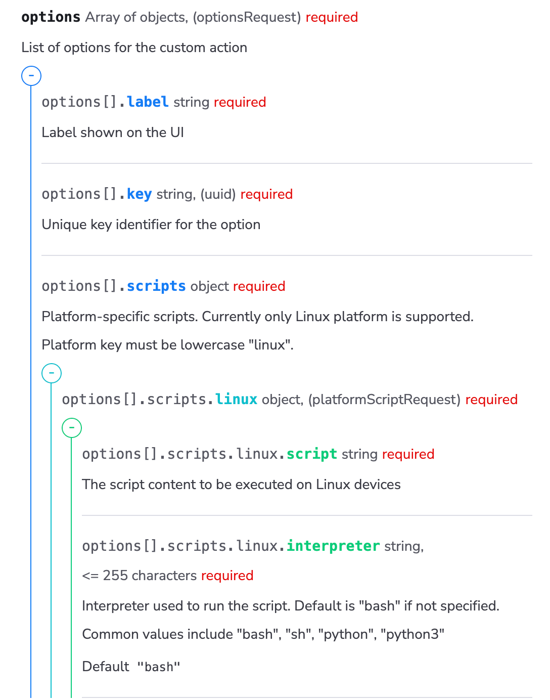 See the nested structures for JSON request bodies.