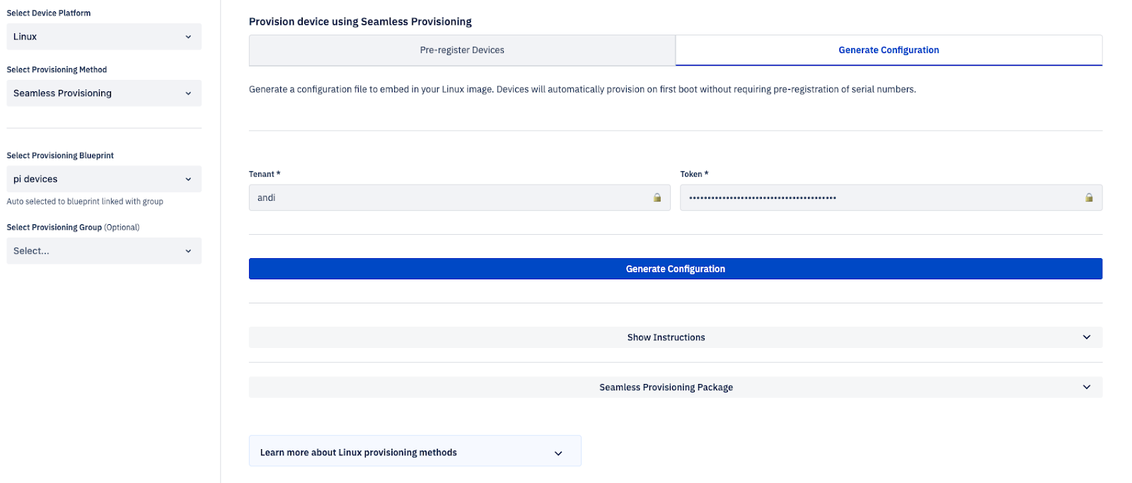 You can now download a configuration file along with the seamless provisioning package and integrate it directly into your build. There’s no need to manually extract serial numbers. Simply create an ISO image and provision your devices with ease. Learn more about seamless for Linux.