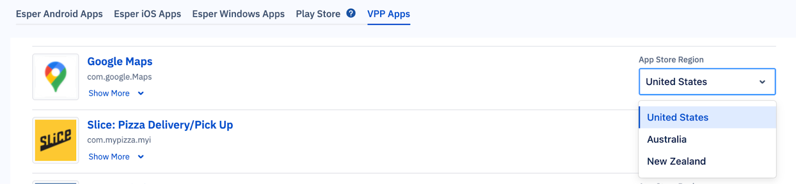 - Select VPP App Countries: You can now choose the countries and regions associated with each VPP app. Previously, if a VPP app was assigned to the wrong country, it wouldn’t receive updates and would display a version of 0.0. With this update, you can select up to five regions in Apple MDM Management and then assign those regions when adding or editing VPP apps under Apps > VPP, helping ensure apps receive updates as expected. Learn more.